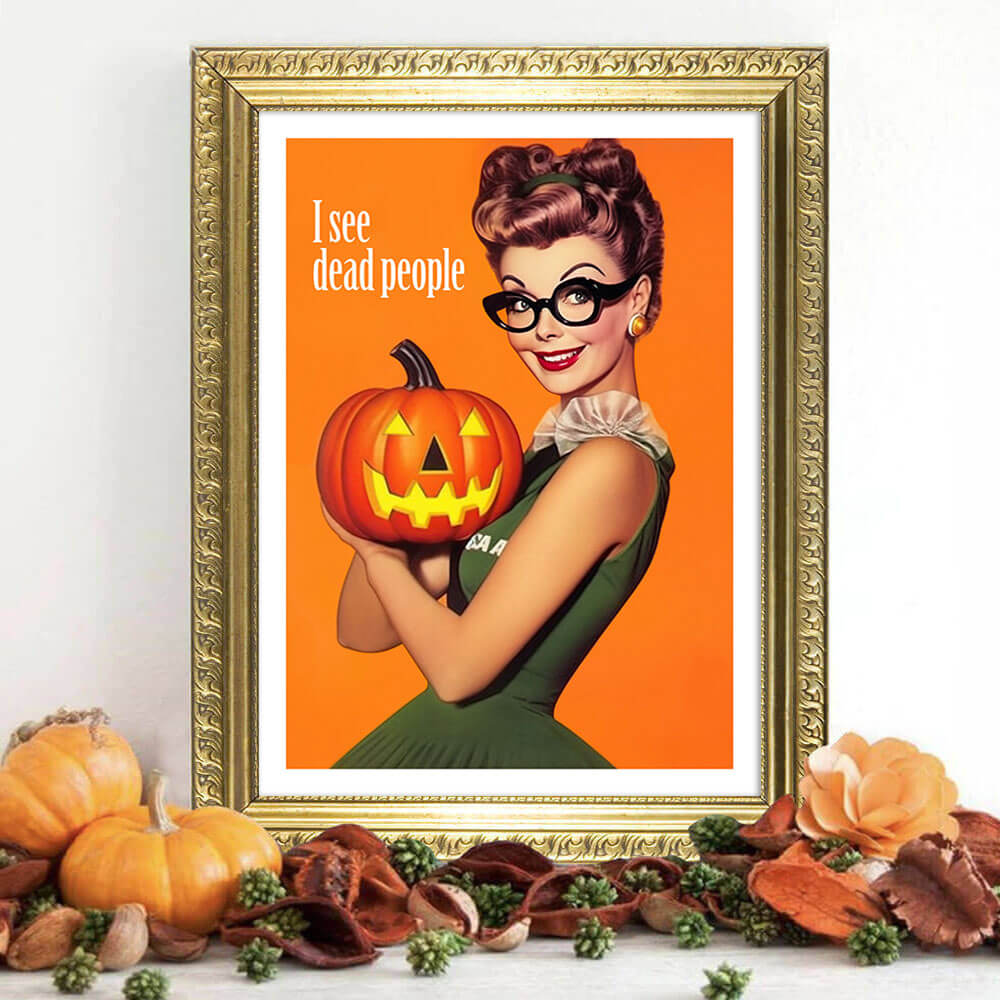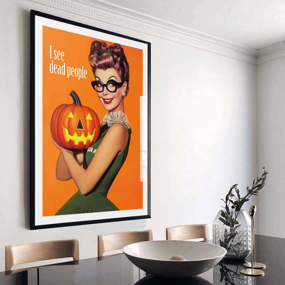 Издигнете своя домашен декор за Хелоуин до смразяващи гръбнака висоти с ексклузивния „I See Dead People Art Print“, наличен само в Jasmine and Jade Interiors. Този зловещ шедьовър не само добавя нотка на ужас към вашето пространство, но също така включва сладкото удоволствие от безплатната доставка по целия свят. С разнообразие от опции за размер на ваше разположение, можете да персонализирате отпечатъка, за да отговаря идеално на уникалните изисквания на вашата къща с духове. Подгответе се да създадете натрапчиво незабравима атмосфера през този сезон на Хелоуин с това изключително произведение на изкуството.